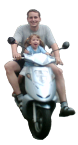 Der große Mann, ein Baum von Mensch, fuhr stets auf seinem 50ccm Roller, völlig ausgelassen und gänzlich ungehemmt.